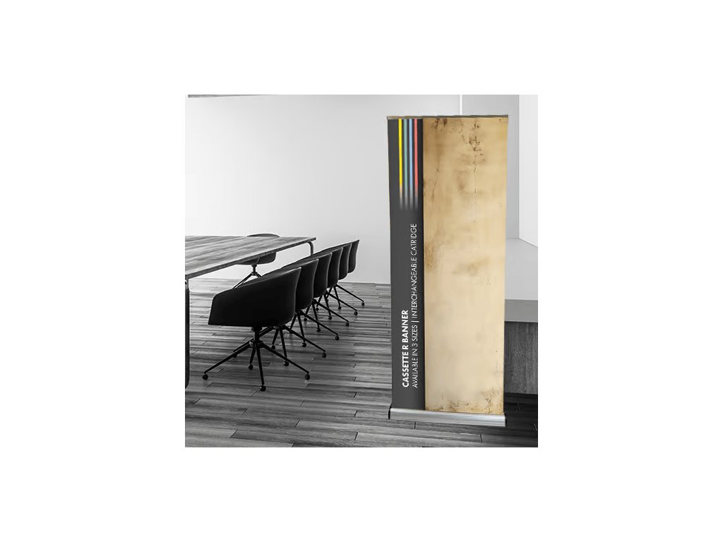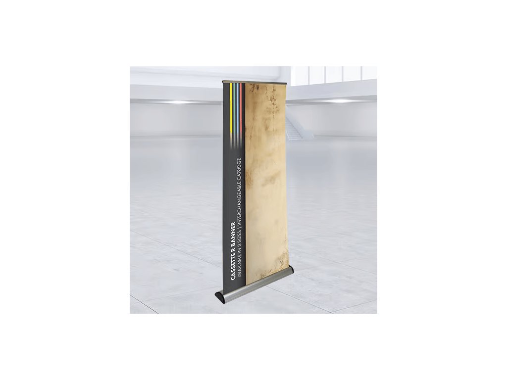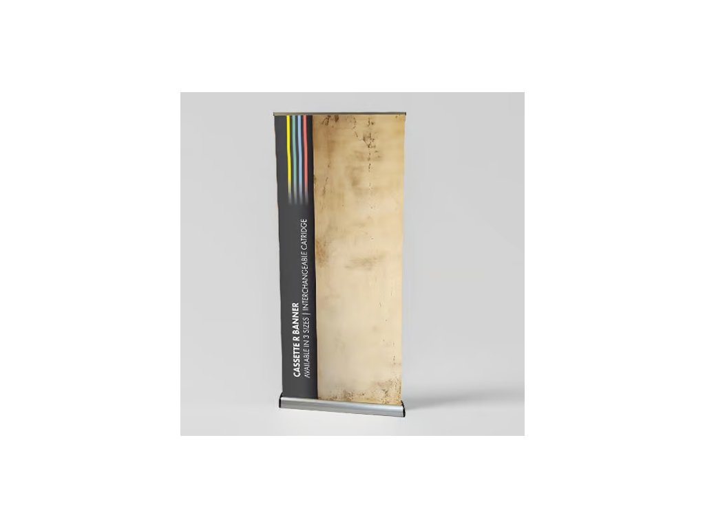 - Náš nejvíce přizpůsobivý roller banner, který umožňuje snadnou a rychlou výměnu grafiky díky funkci vyměnitelné kazety.