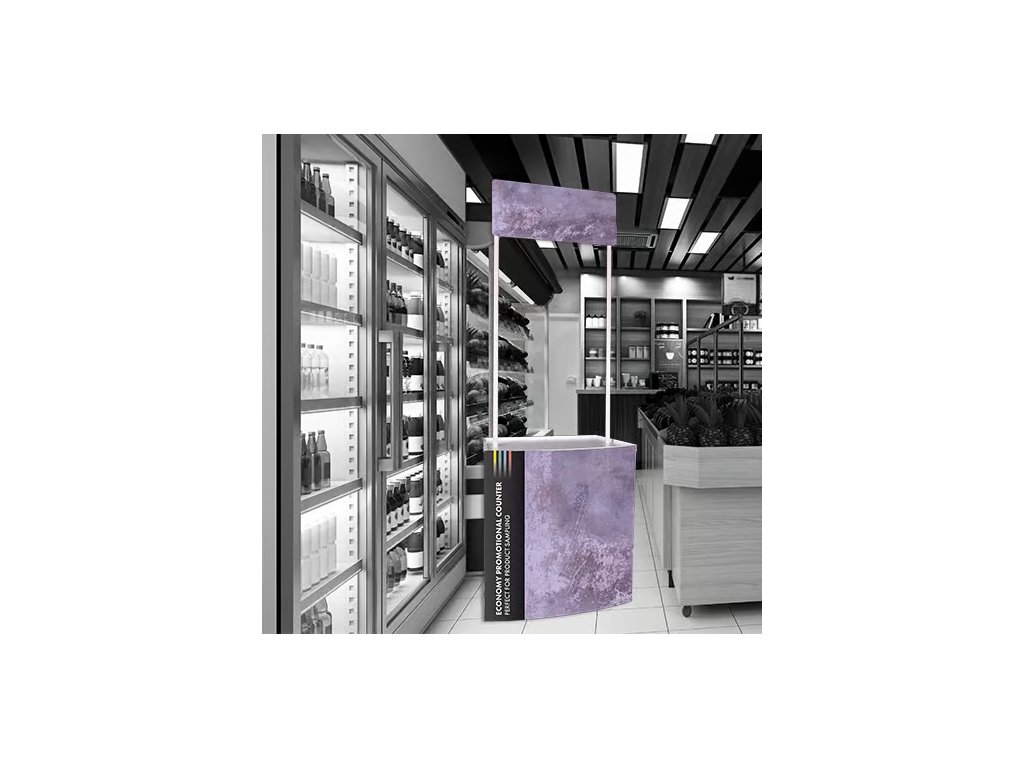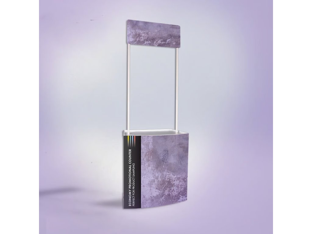 Ekonomický promo pult s poutavou horní grafikou.