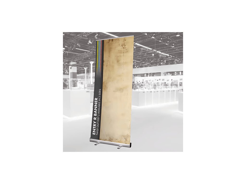 - Entry Roller Banner je k dispozici ve 3 velikostech: 80 cm, 85 cm a 100 cm pro kompaktnější akce nebo prostory.